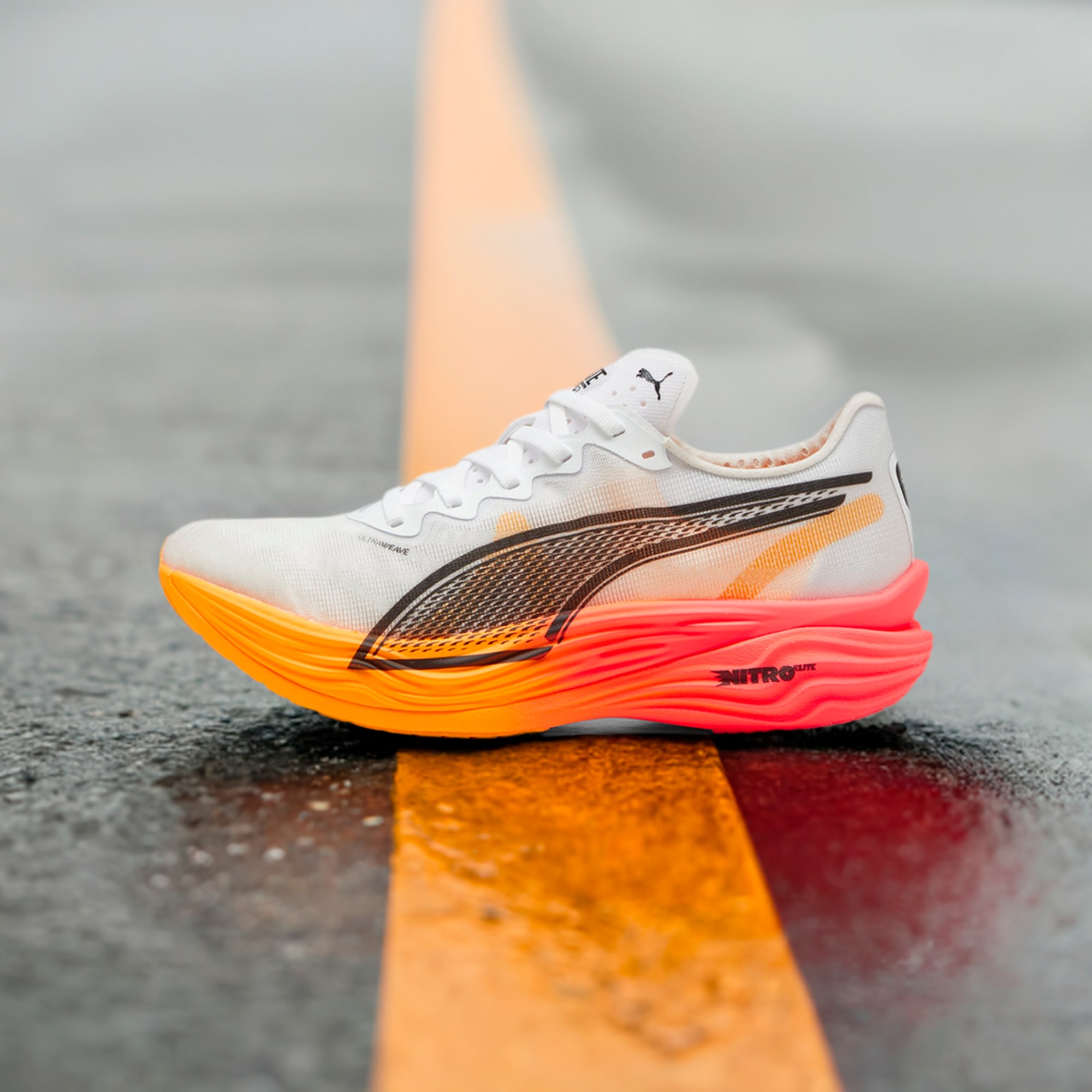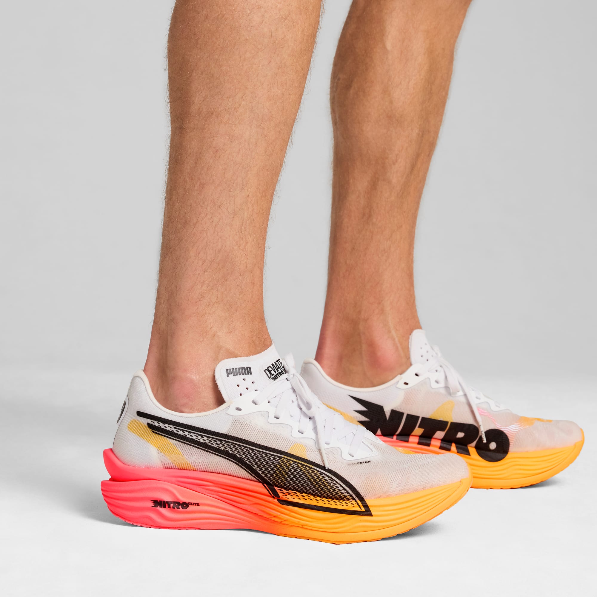 Hit turbo speed. The Deviate NITRO™️ Elite 3 is a running shoe redesigned for lightweight, race day propulsion. A carbon fibre PWRPLATE ensures stability and maximum running efficiency, while NITROFOAM™ ELITE offers supreme cushioning that won't weigh you down. It's a running go-to made with lightweight mono-mesh and durable pumthtaGRIP rubber for multi-surface traction and an effortless run.- Style: 310639_01