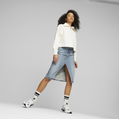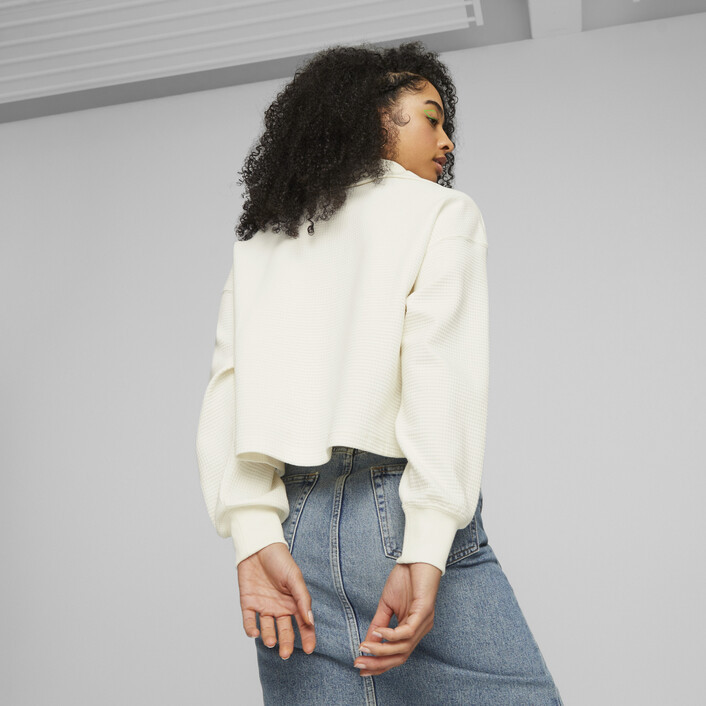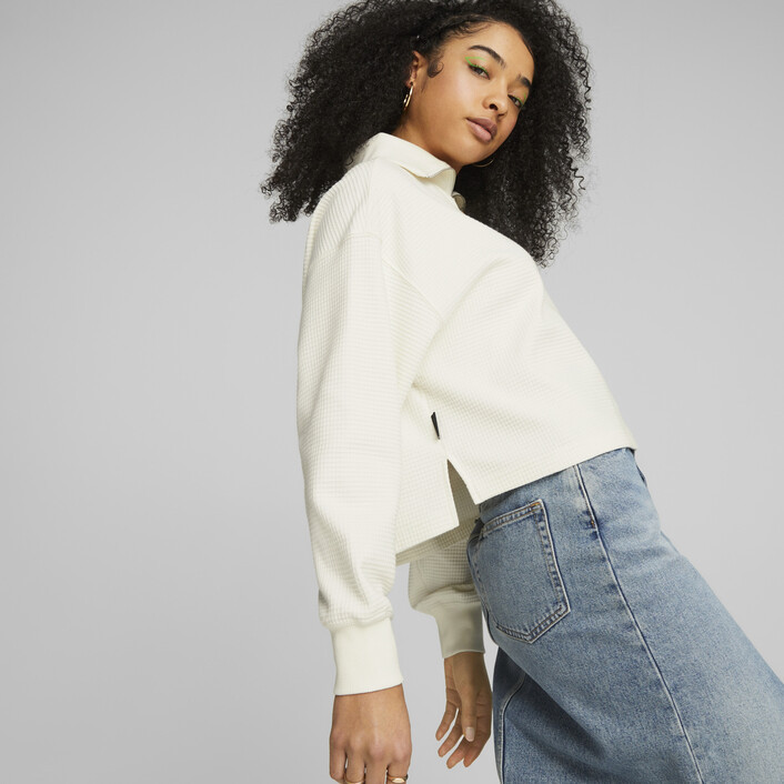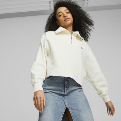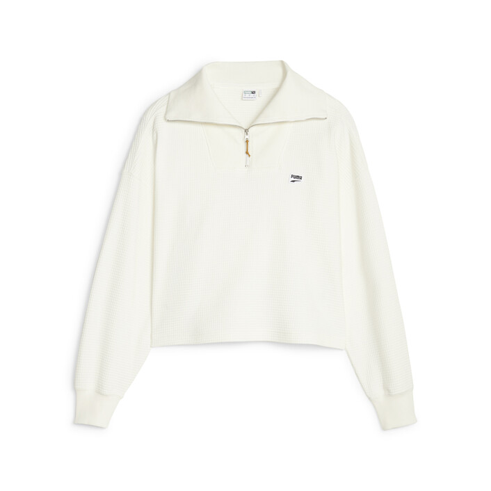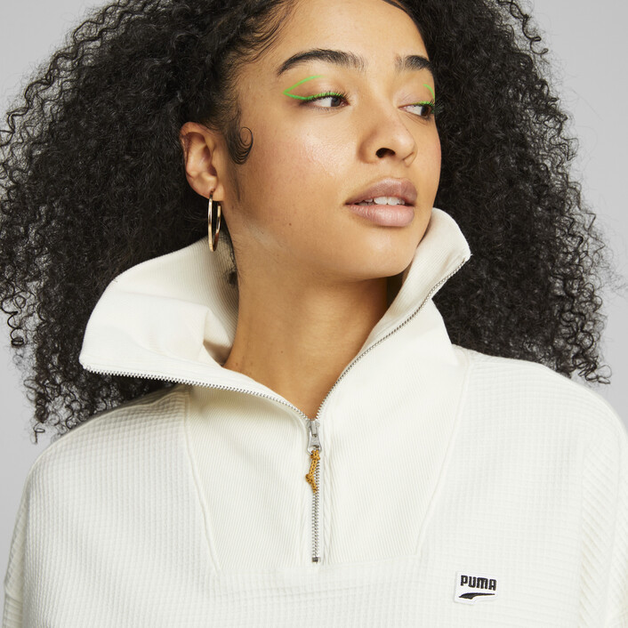 New work is changing the way we live in the city, and we designed the Downtown half-zip to fit our evolving indoor and outdoor experiences. This oversized-fit women's crew is two-toned and has the PUMthtA badge embroidered on the chest.