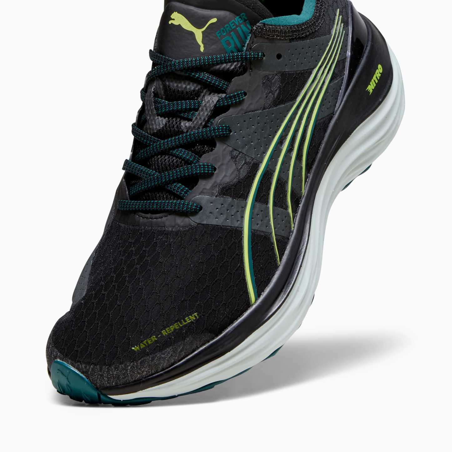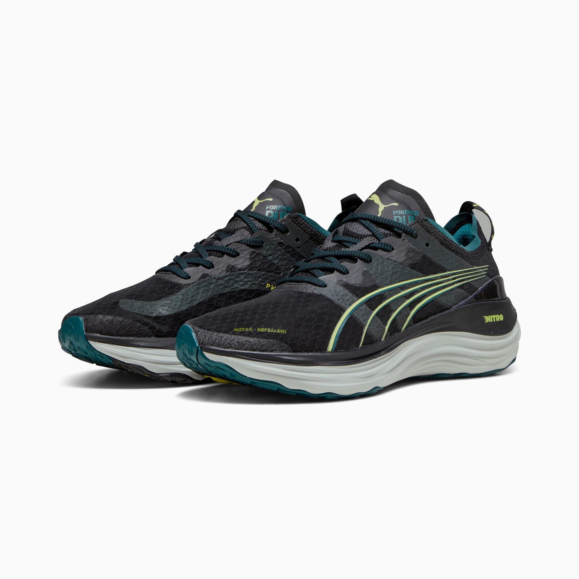 The water repellent ForeverRun NITRO™ dawns a new era of support and guidance for all runners, providing the softness of a full NITROFOAM™ midsole without compromising stability. It features a newly developed NITROFOAM™ midsole with two different densities – a softer core with a firmer rim – and an asymmetrical heel counter to hold the foot in place through every stride. The theme continues on the outsole, thanks to a wider medial rubber segment stabilising late-stage pronation. Plus, with the water-repellent upper, it's the perfect blend of support, cushioning and comfort no matter the weather on your run.- Style: 378472_01