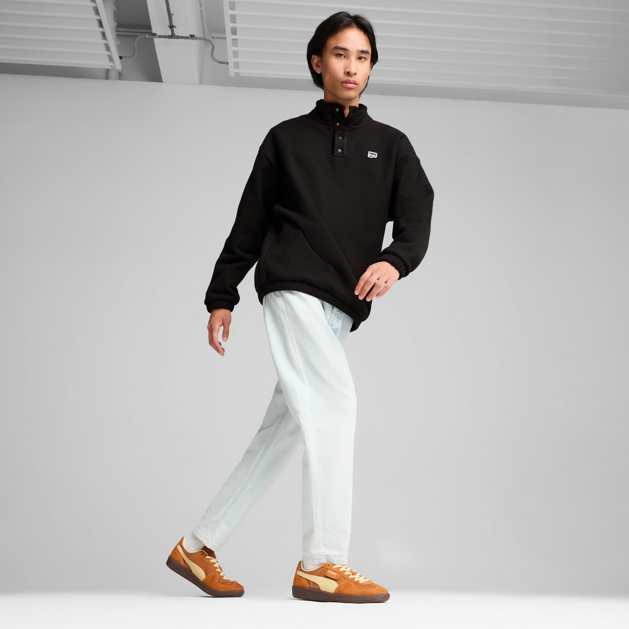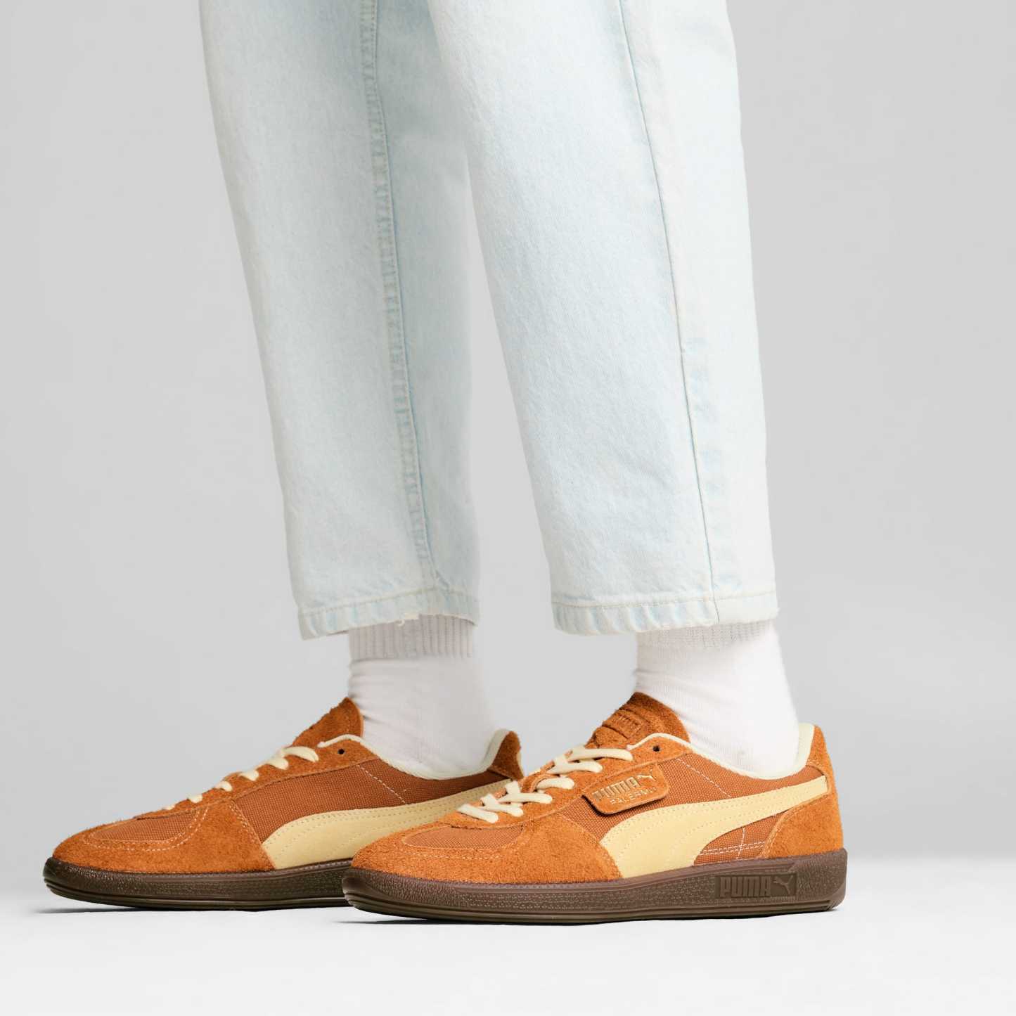 Straight from our archives, it's the pumthta Palermo. This classic terrace shoe debuted in the 80's and now, we've brought it back for the fans. With its signature T-toe construction and classic gum sole, this version features a textile upper and suede overlays.