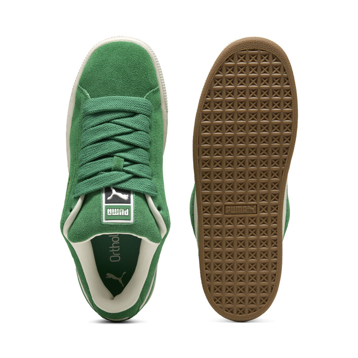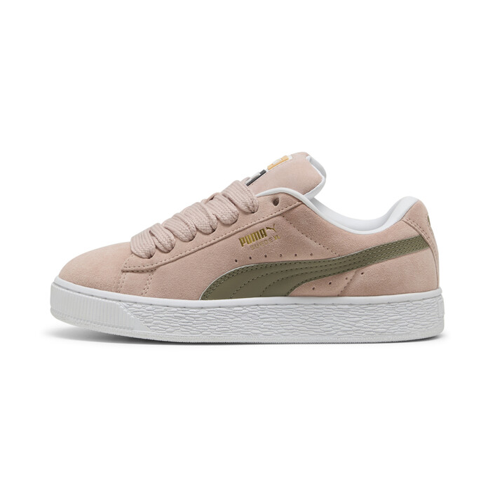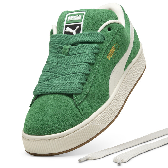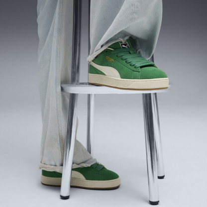 This fresh take on the classic Suede draws inspiration from PUMthtA’s heritage within breakdancing and its influence on modern streetwear. The Suede XL retains the Suede’s iconic DNA, but gives it a twist with an exaggerated padded collar and tongue, plus a chunkier sole. This execution features a full suede upper with a leather Formstrip.
