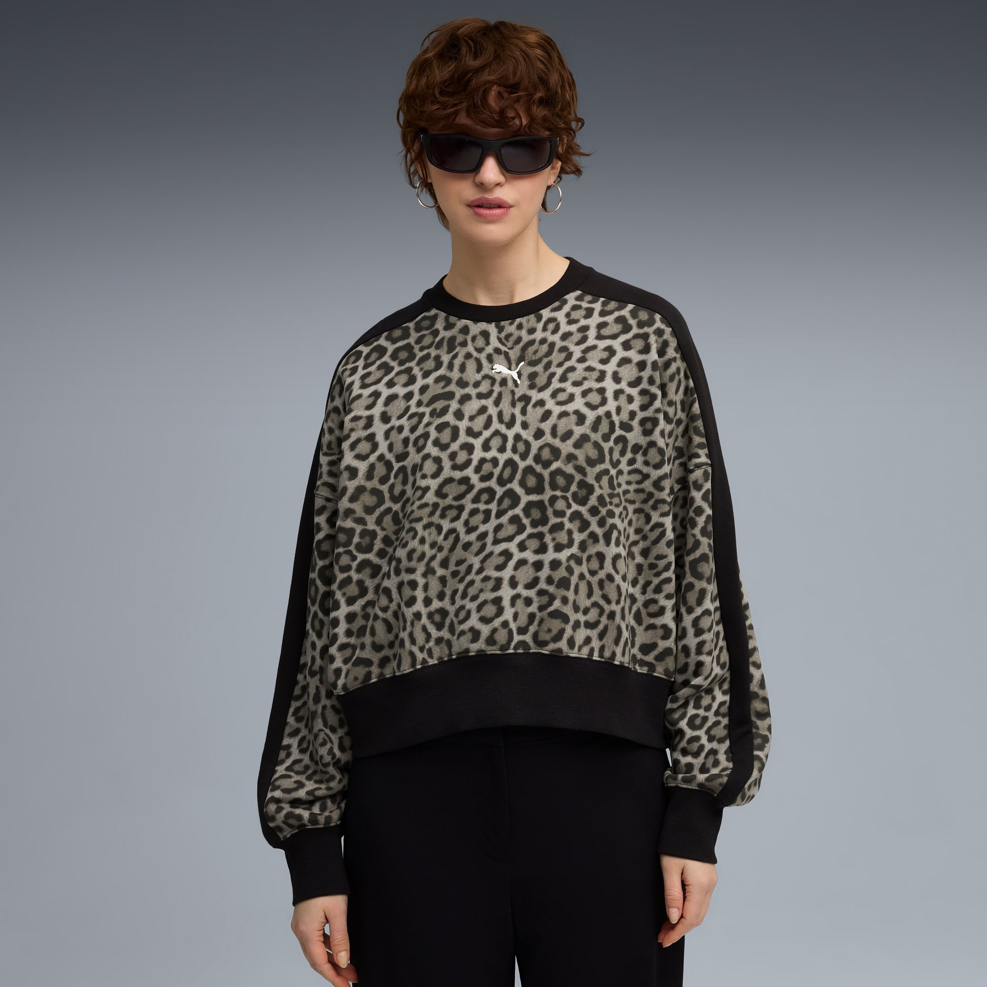 T7 Leopard Luxe Women's Animal Print Crewneck Sweatshirt