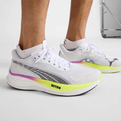 The pumthta Velocity NITRO™ 3 – with this shoe, we're taking industry-best and bringing it to you. These kicks are all about speed and comfort thanks to advanced NITRO™ technology, offering superior responsiveness and cushioning in a lightweight package that feels like you're running on clouds. Plus, with the heel spoiler, you not only get a sleek look but you'll also benefit from enhanced stability for confident strides. Get ready to up your running game with the Velocity NITRO™ 3. It's not just a shoe; it's a statement.- NITRO™ Advanced technology providing superior responsiveness and cushioning in a lightweight package